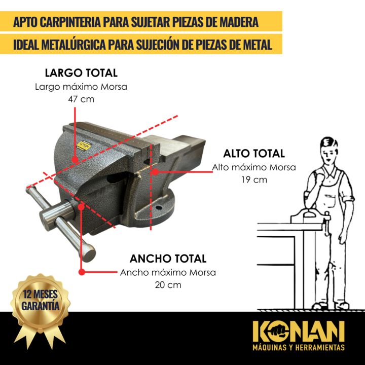 La Morsa de Banco Konan KMO/8 está diseñada para trabajos pesados y exigentes, ofreciendo una sujeción firme, segura y estable. Incorpora yunque integrado, ideal para tareas de golpeo, enderezado y conformado de piezas metálicas sin necesidad...