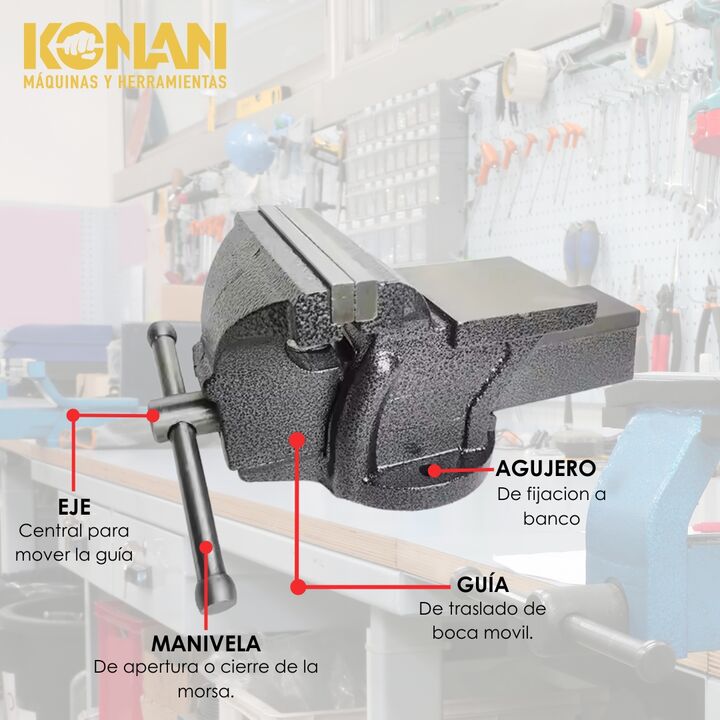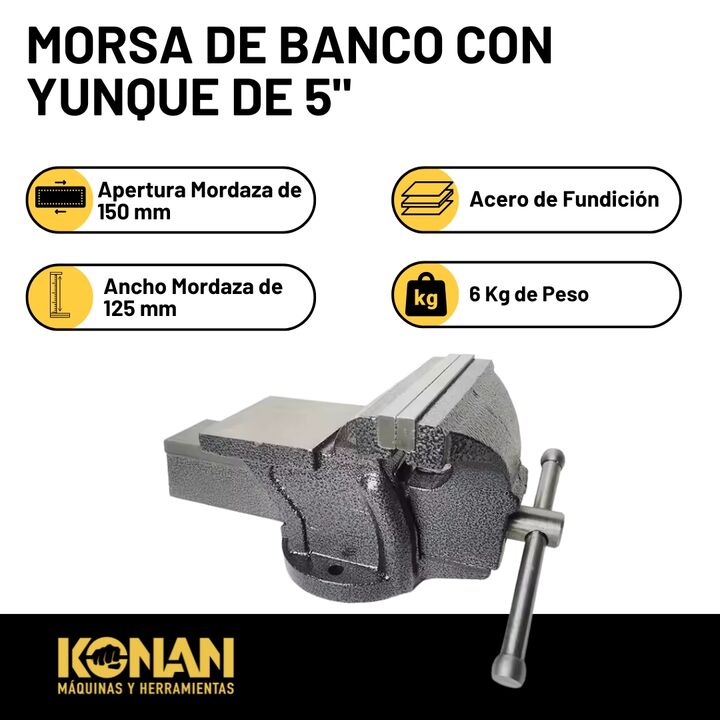 Morsa De Banco Konan N°5 Fija Con Yunque Profesional