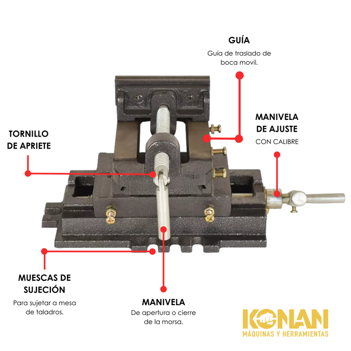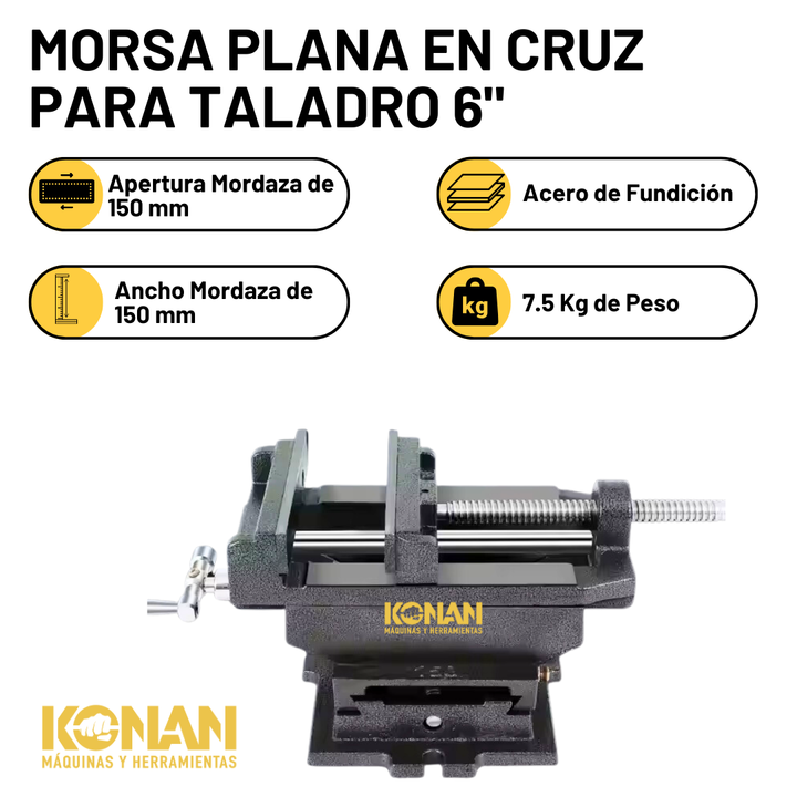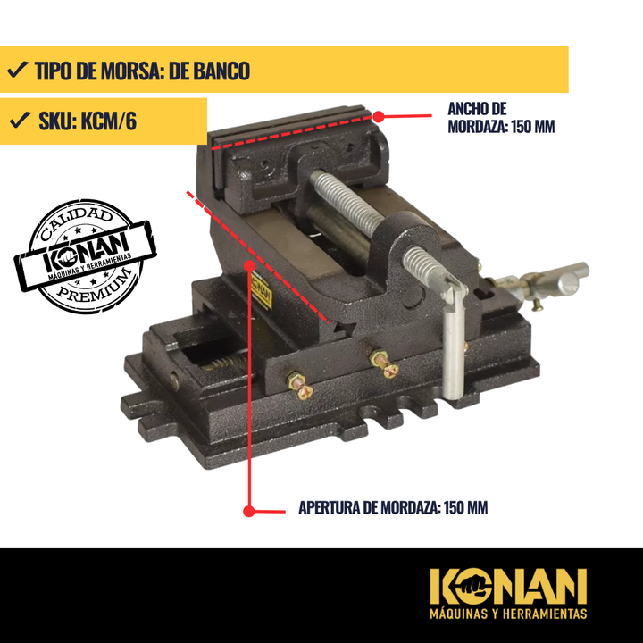 Morsa Plana Cruz Konan 150 mm (6") Base Desplazable – KCM/6