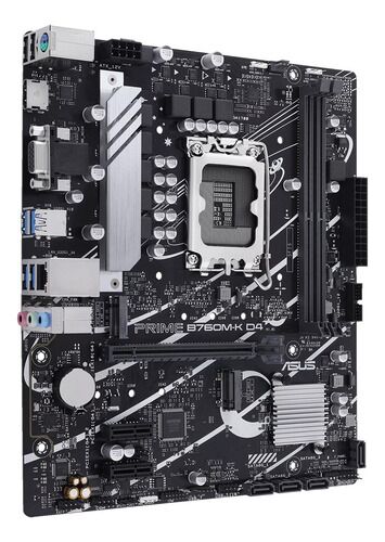 Motherboard ASUS Prime B760M-K D4, Intel B760 LGA 1700 mATX con PCIe 4.0, dos puertos PCIe 4.0 M.2, DDR4, Realtek 2.5Gb Ethernet, VGA, HDMI, SATA 6 Gbps, USB 3.2 Gen 1 frontal, Aura Sync - 90MB1DS0-M1EAY0 Socket Intel LGA 1700: Listo para procesadores Intel de 13a y 12a generación. Conectividad ultr...