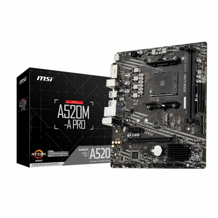 Motherboard MSI A520M-A Pro DDR4 para AMD Ryzen mATX Motherboard MSI A520M-A Pro DDR4 para AMD Ryzen mATX MSI Detalles Caracteristicas Generales - Marca:MSI Detalles técnicos - Part Number:911-7C96-044 - Chipset:AMD® A520 Chipset - Memoria:DDR4 - Frecuencias DDR4 soportadas (JEDEC):1866 / 2133 / 240...