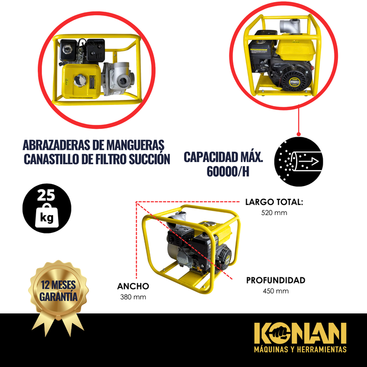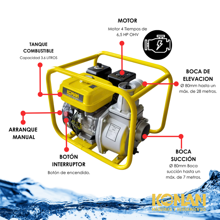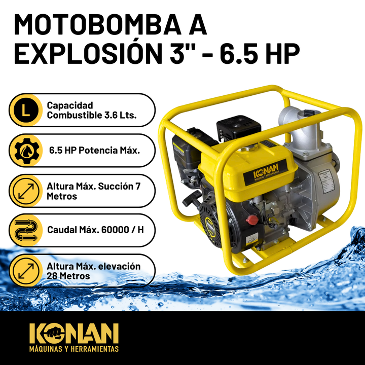 Motobomba a Explosión Konan 3 Pulgadas 6.5 HP Limpia / Sucia