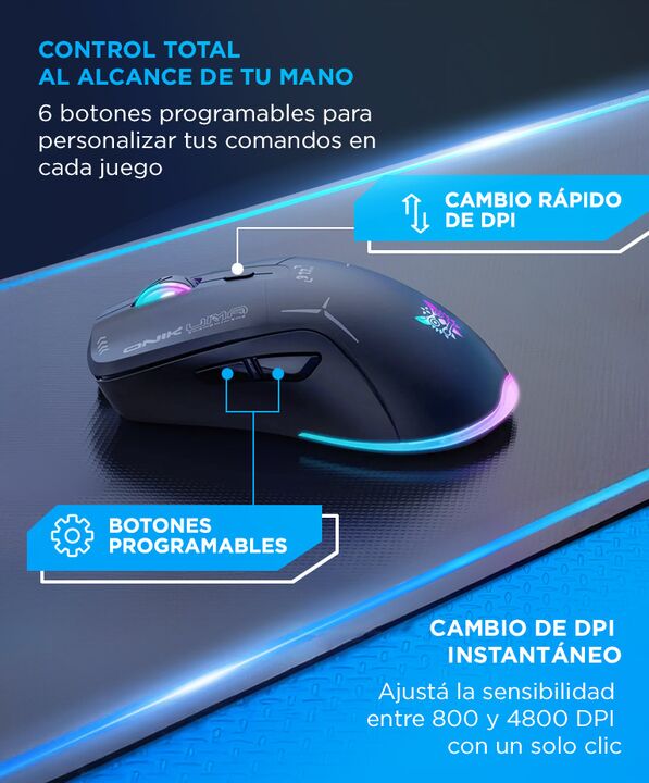 Conexión dual para mayor libertad: Alterná entre modo inalámbrico 2.4GHz y conexión por cable según tus necesidades de juego. Iluminación RGB personalizable: Elegí entre múltiples efectos de luz para complementar tu setup gamer. DPI ajustable hasta 4800: Adaptá la sensibilidad del mouse para distint...