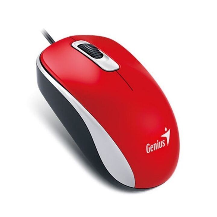 MOUSE GENIUS DX-110 USB RED (15007) Unidad de sensor óptico Longitud de cable 1.5m Cantidad de botones Tres (izquierda, derecha y central con desplazamiento) Color Rojo pasión Peso 85 g Dimensiones (A x A x P) 60 x 105 x 37 mm (2,36 x 4,13 x 1,46 pulgadas) Resolución (DPI) 1000 Nombre del modelo DX-...
