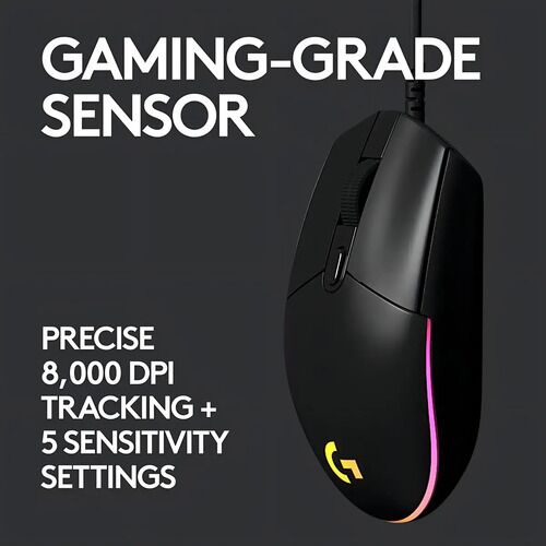 ARQUITECTURA DE SEGUIMIENTO Y SENSOR Tipo de sensor: Óptico de grado gaming con tecnología de seguimiento de alta precisión. Rango de resolución: Ajustable desde 200 hasta 8.000 DPI (puntos por pulgada). Gestión de perfiles: Sensibilidad configurable mediante software para adaptarse a diferentes esc...