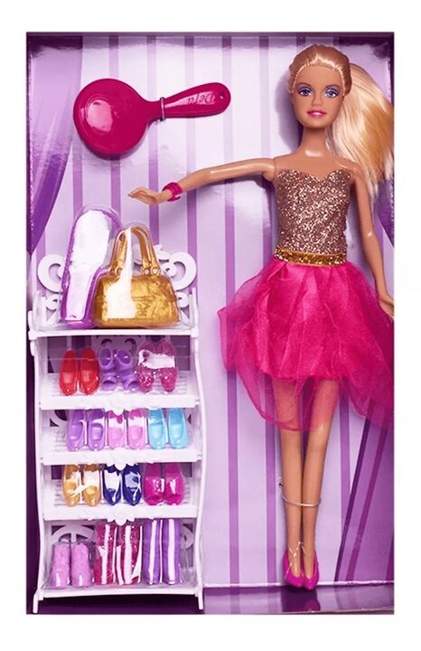 A Paloma le encantan los zapatos Tiene una gran variedad de modelos para distintas ocasiones.Divertite con Paloma y su colorida coleccion de zapatosContiene cepillo carteras mueble exhibidor y 9 pares de zapatos.
