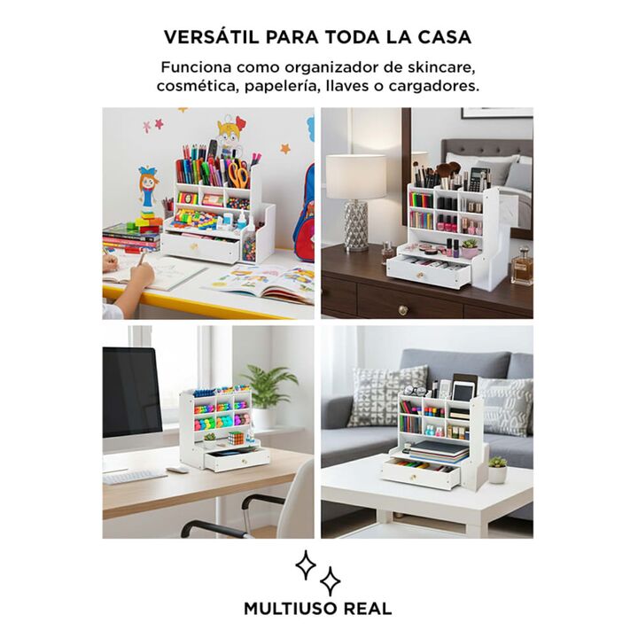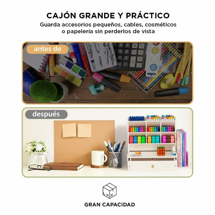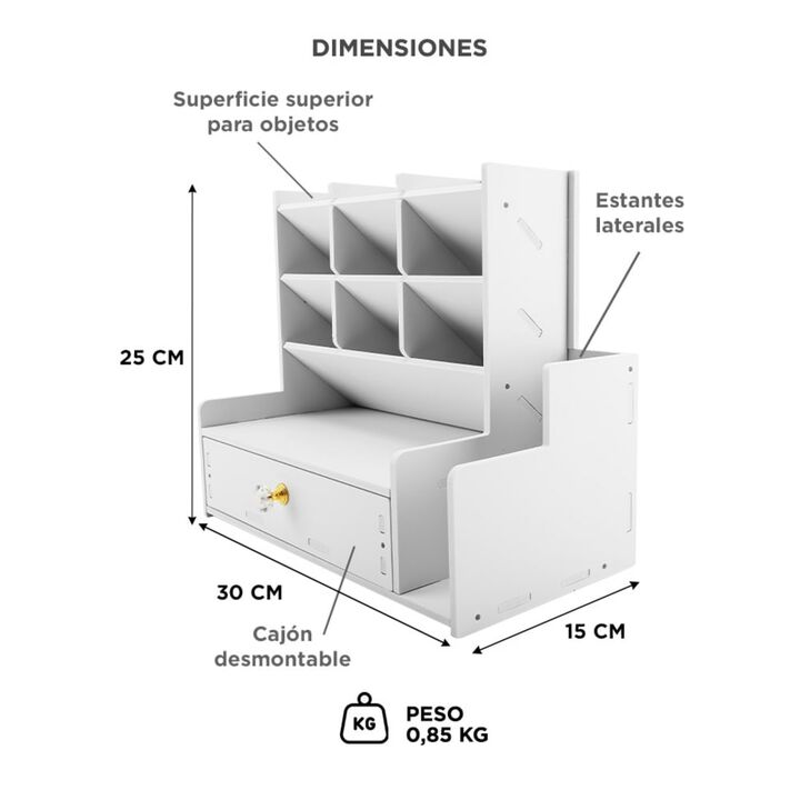 Nuevo Organizador Con Compartimientos y Cajón By Gadnic Estable y Robusto: Hecho en PVC, construcción resistente, seguro y no tóxico. Viene con una bolsa de tornillos para armar, que conecta firmemente cada pieza, no se necesitan herramientas adicionales, es la mejor y más segura opción de almacenam...