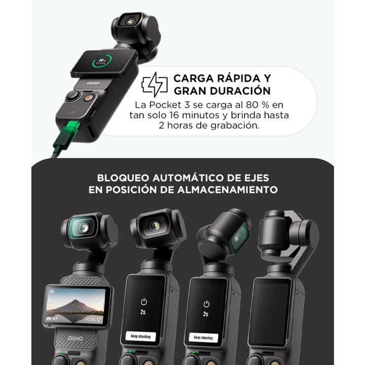 El DJI Osmo Pocket 3 es el compañero perfecto para capturar momentos extraordinarios con una calidad cinematográfica. Esta cámara de bolsillo, compacta y potente, redefine la forma en que capturas tus recuerdos, brindándote estabilidad y nitidez sin igual. Estabilización Avanzada: La tecnología de e...