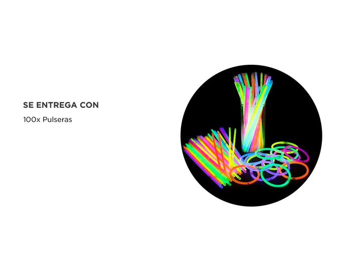 ¡Ilumina tus eventos con nuestro pack de pulseras luminosas! . Con su iluminación ultrabrillante, estas pulseras no solo añadirán un toque de diversión y energía a tus eventos, sino que también proporcionarán una iluminación ambiental única y llamativa. Nuestras pulseras están equipadas con conector...