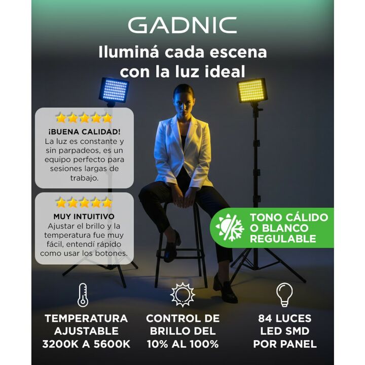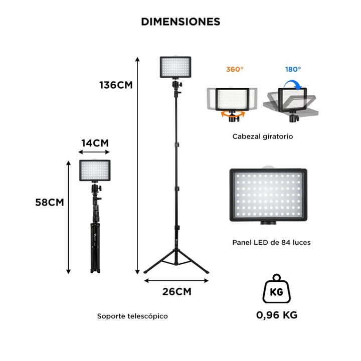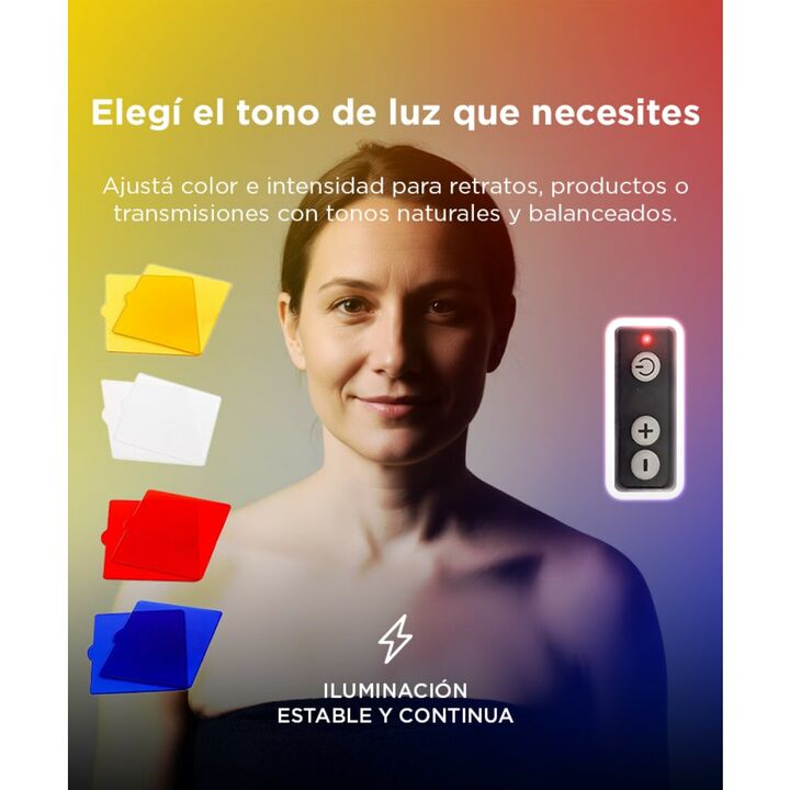 ¡Nuevo panel de luz LED profesional 9000k! Versátil y potente: El panel de luz LED RGB con soporte es el más versátil del mercado. Posee un soporte giratorio para que puedas darle infinitos usos: desde iluminar grabaciones de con tu celular, hasta cámaras de video y fotografía profesionales. El bril...