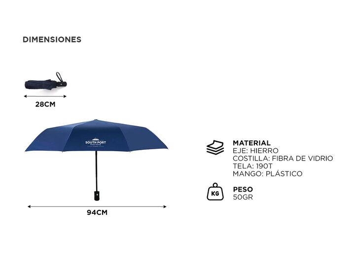 El paraguas corto South Port con apertura automática es la combinación perfecta de estilo y funcionalidad para protegerte de la lluvia con facilidad y elegancia. Con un diseño compacto y conveniente, este paraguas es ideal para llevar contigo en cualquier ocasión, asegurando que estés preparado para...