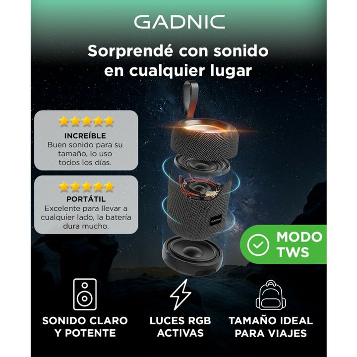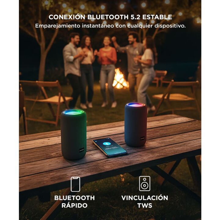 El parlante Bluetooth EchoGod está diseñado para ofrecer una experiencia auditiva superior en un formato compacto y portátil. Garantiza una conexión estable y rápida con un alcance de hasta 10 metros sin barreras. La salida de potencia de 5W, combinada con un parlante de 2.25 y una relación señal/ru...