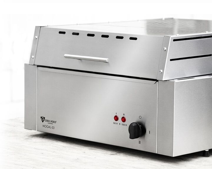 GABINETE EXTERIOR Acero inoxidable.PARRILLA Doble enrejado enlozada.DISEO Compacto y funcional.RESISTENCIA ELCTRICA DoblePOTENCIA 3 niveles 500 w 1000 w 1500 w