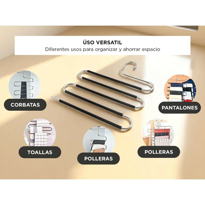 Nueva Percha Para 5 Pantalones Gadnic Organizador de placard único que se puede colocar con todas las perchas al mismo nivel este diseño te ayuda a ahorrar espacio de almacenamiento y mantenerlo todo mejor organizado. Mantene tus pantalones sin arrugas y ahorrando espacio en tu placard. Especificaci...
