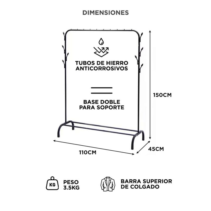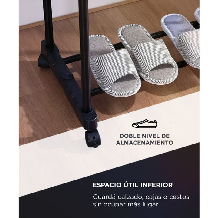Organizacion y estilo en un solo producto El perchero Gadnic SHRACK50 ofrece una estructura de acero resistente y un diseño moderno pensado para optimizar el espacio Su barra superior permite colgar varias prendas mientras que la base inferior brinda lugar para zapatos o cajas Versatil y facil de ar...