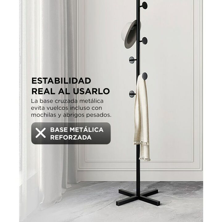 Diseño minimalista que ordena y decora El perchero de pie Gadnic combina estilo nórdico con un diseño limpio que se integra fácilmente en cualquier ambiente del hogar. Su estructura vertical permite colgar prendas y accesorios manteniendo el orden sin ocupar demasiado espacio. Es ideal para dormitor...