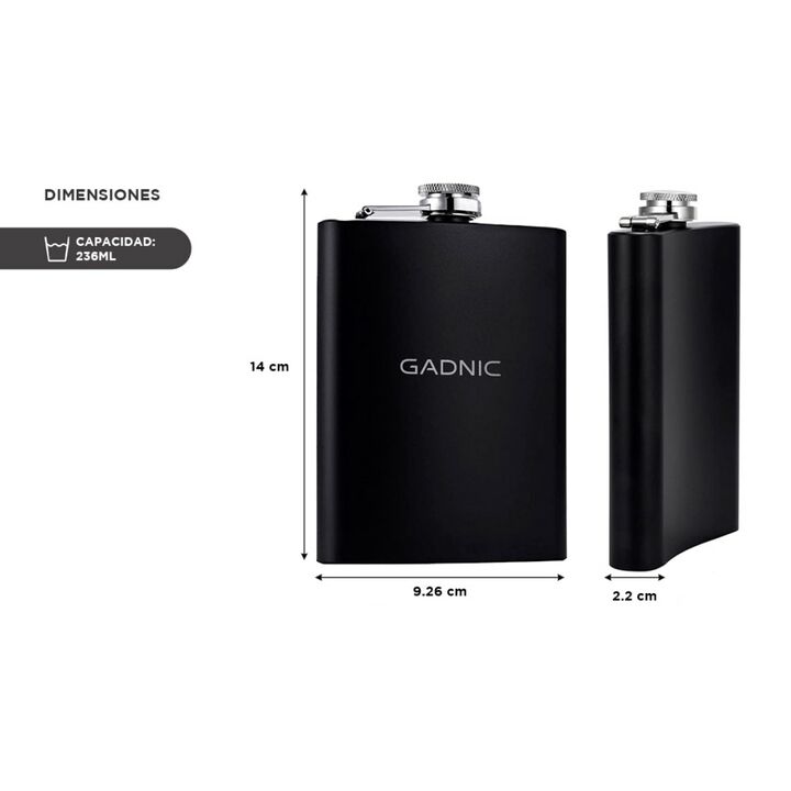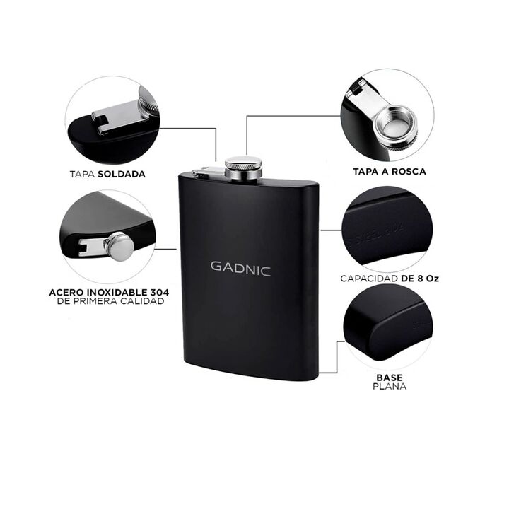 Presentamos la nueva Petaca Whisky Gadnic, el accesorio perfecto para los amantes de las bebidas. Diseñada en acero inoxidable, esta petaca no solo es elegante, sino que también es funcional, manteniendo la temperatura de tus bebidas, ya sea un whisky caliente para esos fríos días de invierno o una ...