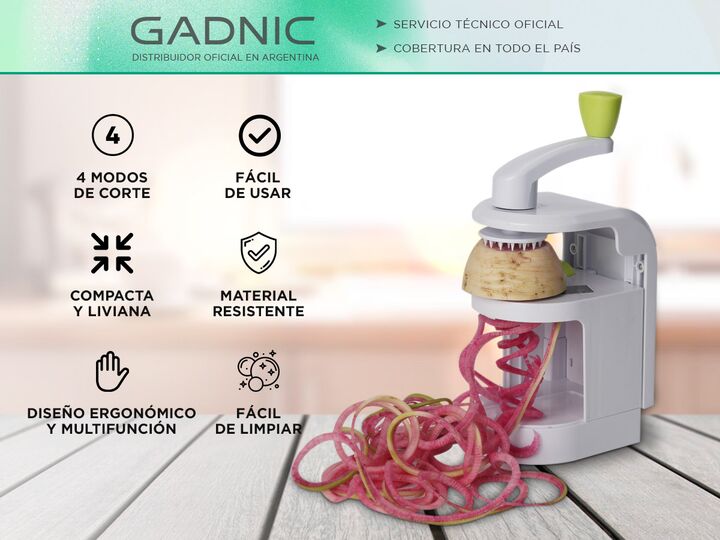 La picadora manual Gadnic es tu aliada perfecta para preparar platos originales y saludables. Con sus 4 modos de corte –en espiral, fino, rizado y grueso– vas a poder transformar vegetales comunes en preparaciones creativas. Su diseño ergonómico y compacto facilita el uso diario sin ocupar espacio e...