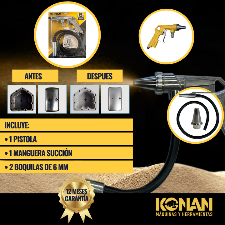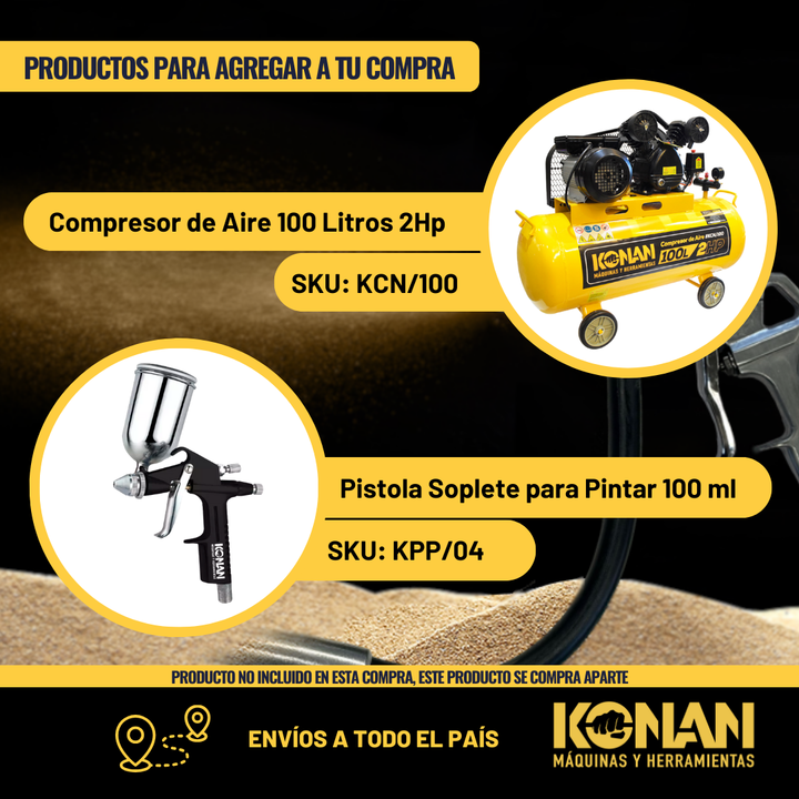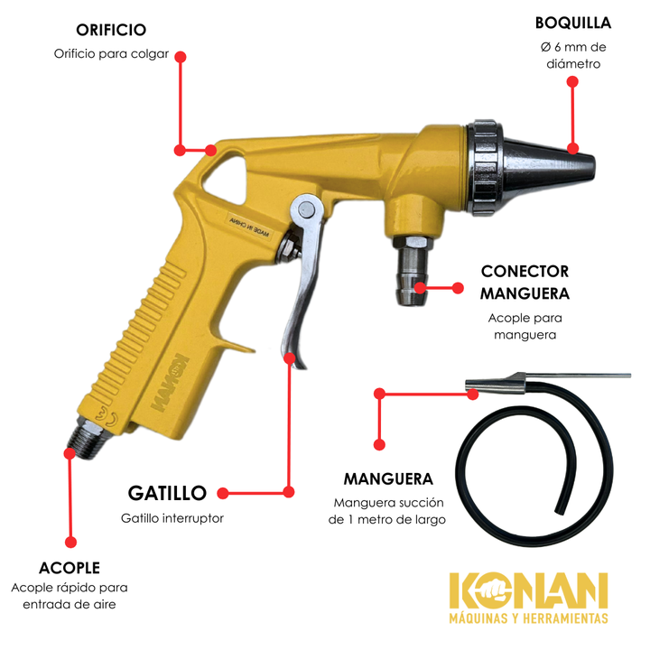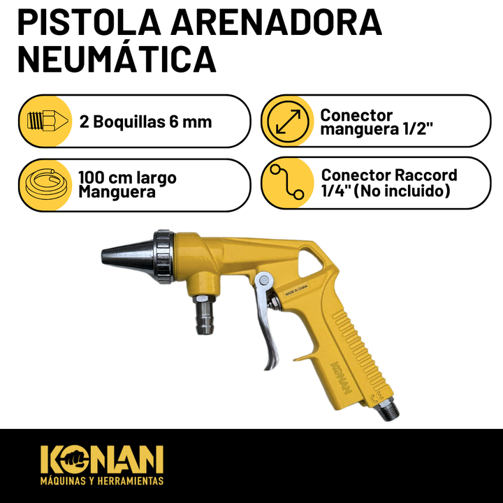 La pistola arenadora neumática KPA/01 de KONAN es una herramienta diseñada para facilitar trabajos de limpieza y preparación de superficies. Equipada c...
