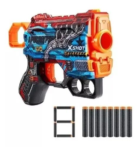 Facil de recargarViene con almacenamiento de dardos en la parte inferior para que pueda recargar rapidamente y volver a la accionArma oculta perfecta para sorprender a tus enemigosLos dardos X-Shot Skins incluyen una nueva tecnologia de bolsa de aire para un tiro mas rapido. mas lejano y mas preciso...