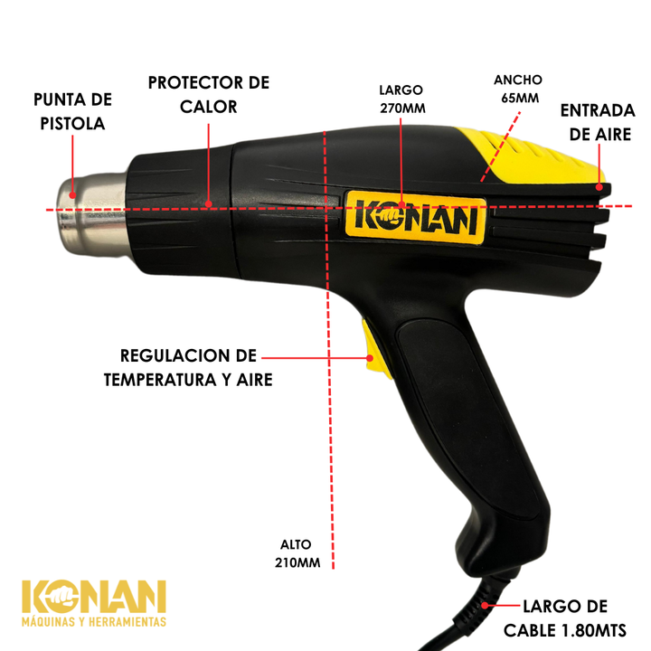 Pistola de Calor Konan 2000W con 2 Boquillas