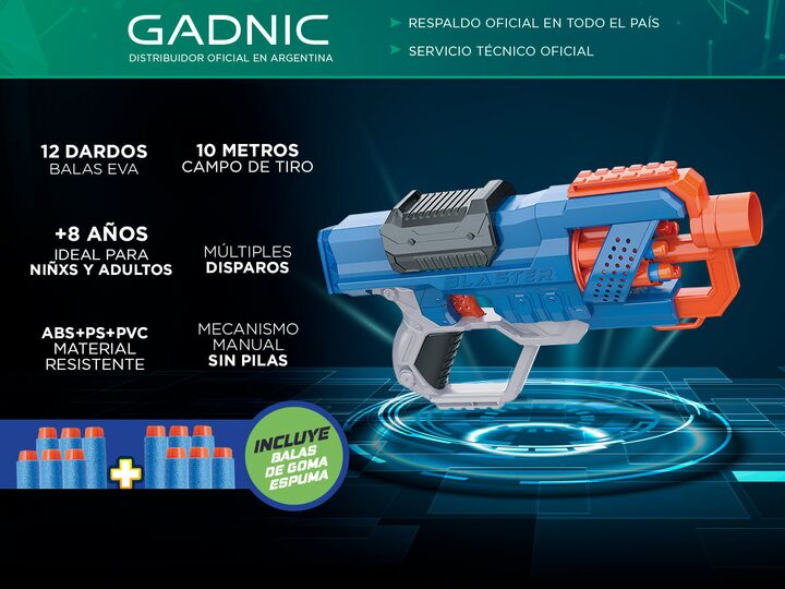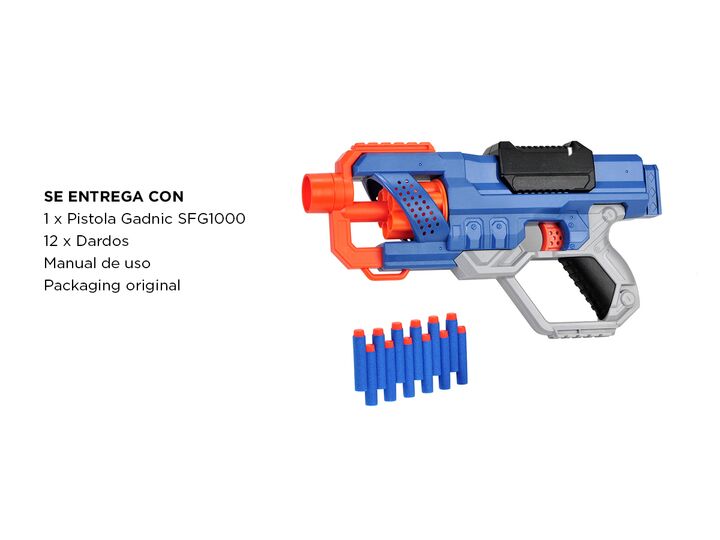 La pistola Gadnic SFG1000 tiene un tambor giratorio de seis dardos para que puedas disparar varios dardos antes de recargar. Dispara un dardo a la vez o lanza los seis dardos rápidamente con acción de fuego de golpe. Incluye 12 dardos Gadnic oficiales, suficiente para cargar completamente el tambor ...