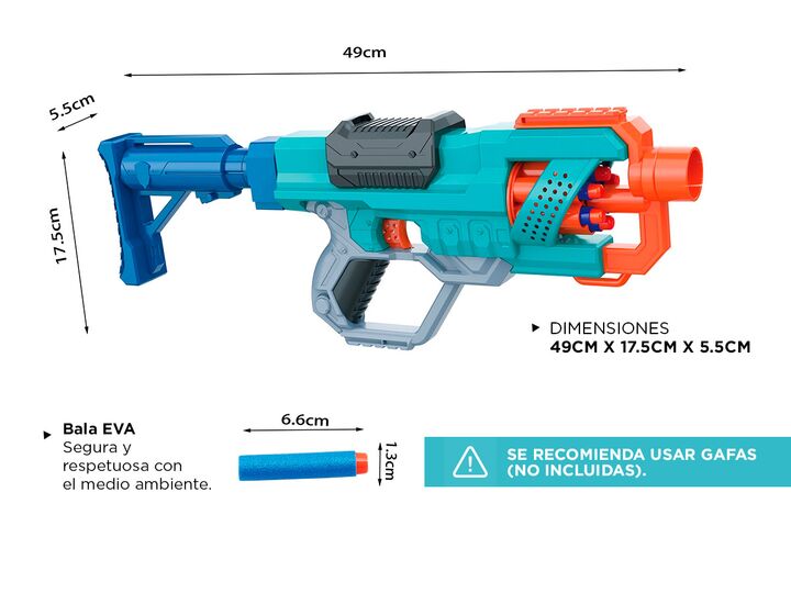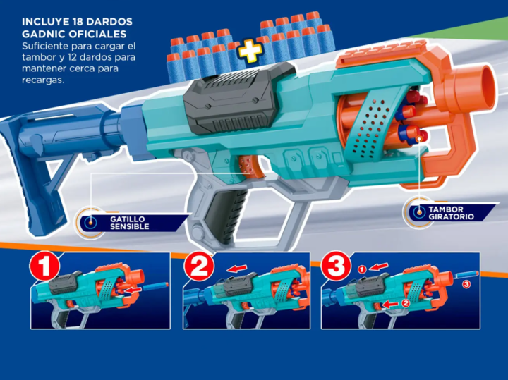 La pistola Gadnic SFG2000 tiene un tambor giratorio de seis dardos para que puedas disparar varios dardos antes de recargar. Dispara un dardo a la vez o lanza los seis dardos rápidamente con acción de fuego de golpe. Incluye 18 dardos Gadnic oficiales, suficiente para cargar completamente el tambor ...