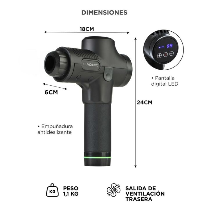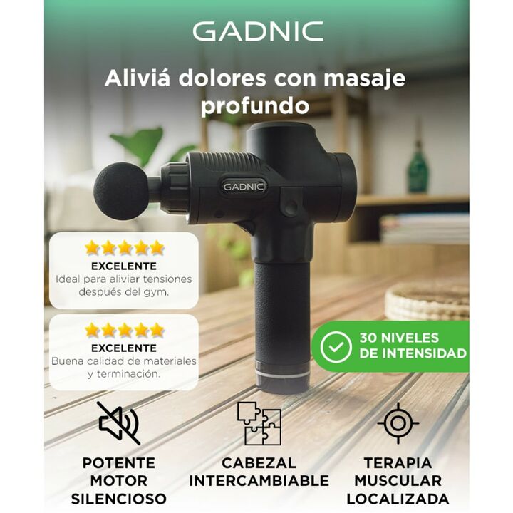 Esta Pistola Masajeadora Gadnic es ideal para la recuperación muscular luego de hacer deporte, rehabilitación después de una lesión deportiva o dolores musculares. Con sus 30 velocidades de masajes y 12 cabezales masajeadores podrás adaptarlo a cualquier parte del cuerpo. Ayuda a reducir la inflamac...