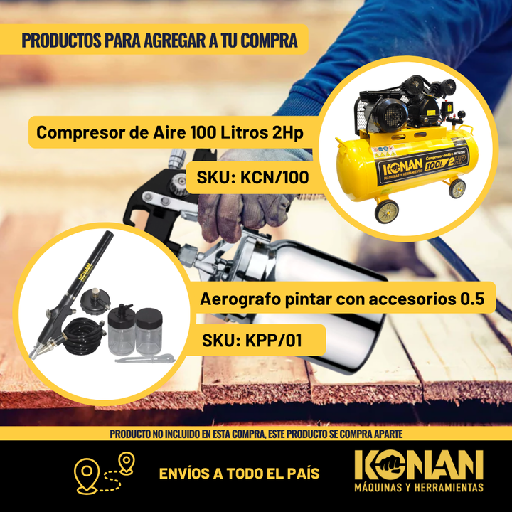 La Pistola Soplete de Pintar Konan 1.4 mm Tipo Succión es ideal para trabajos de pintura general, retoques y acabados uniformes. Su sistema de alimentación por succión permite una pulverización constante y controlada, logrando excelente cobertur...