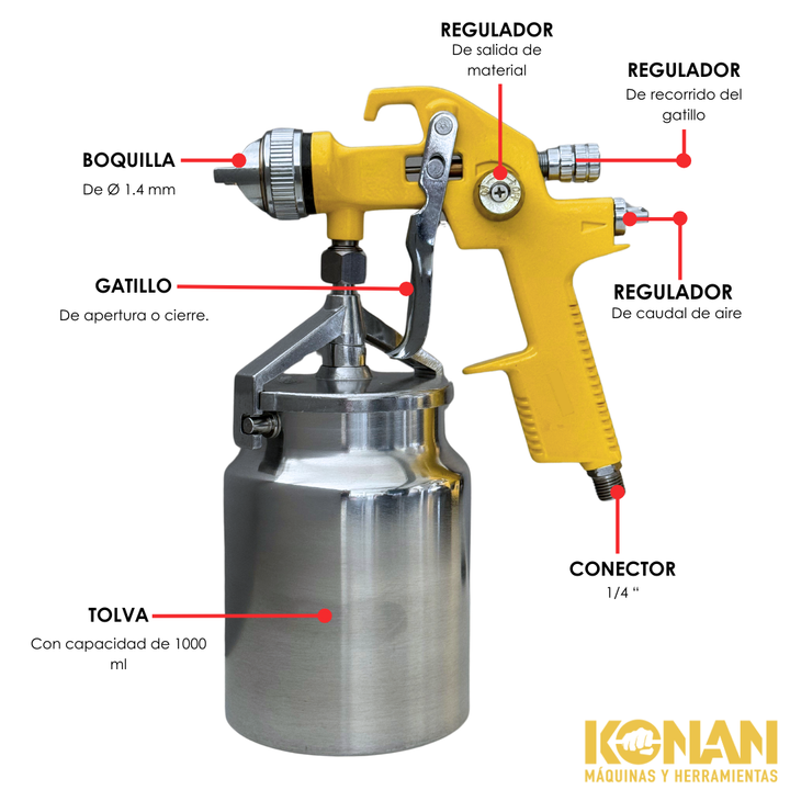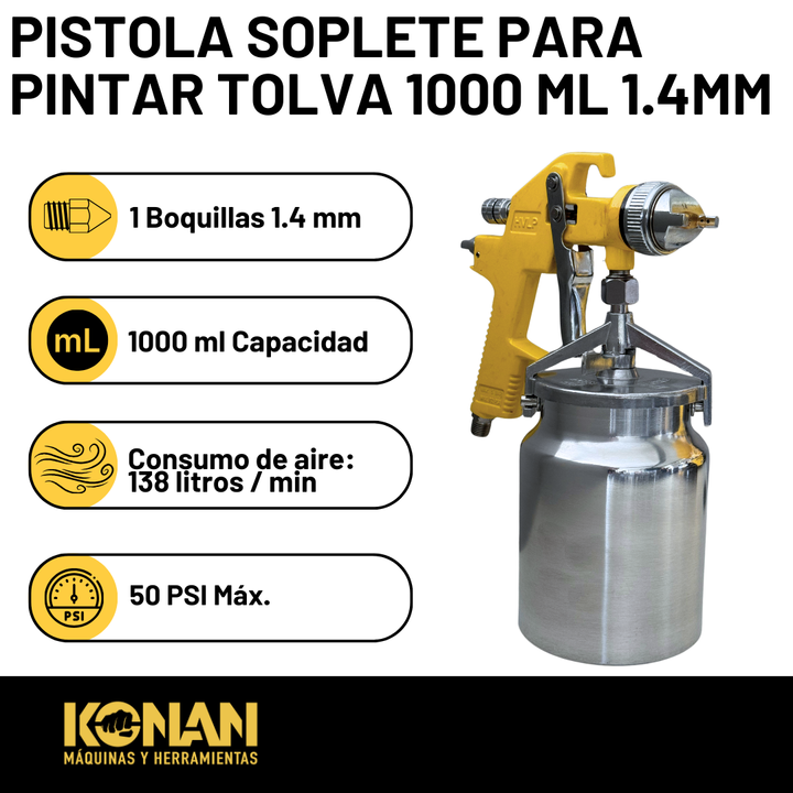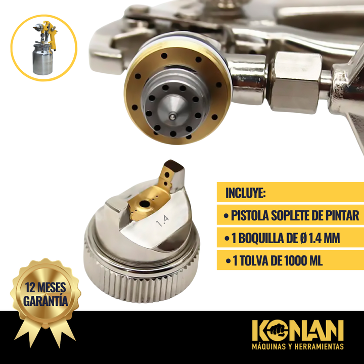 Pistola Soplete de Pintar Konan 1.4 mm Tipo Succión