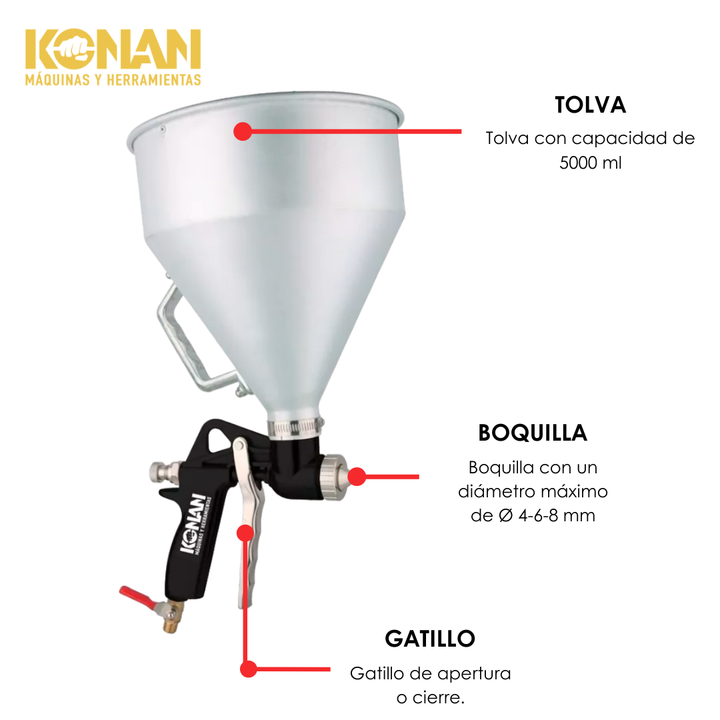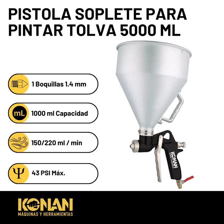 Pistola Soplete de Pintar Konan con Tolva de 5 Litros – Revestimientos