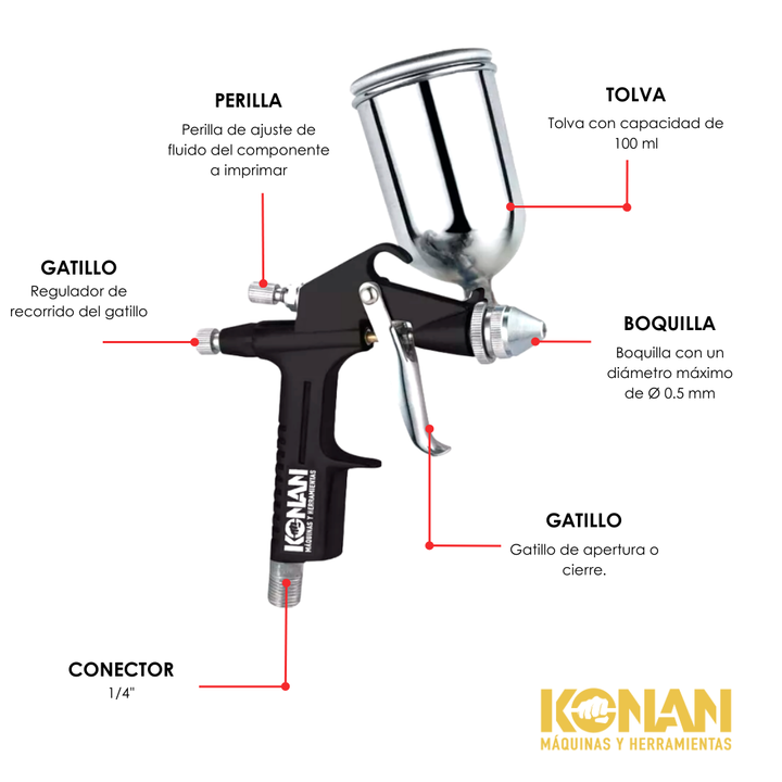 La Pistola Soplete de Pintar KPP/04 tipo gravedad con pico de 0.5 mm está diseñada para trabajos de alta precisión, ideal para detalles finos, retoques y acabados delicados. Su sistema de alimentación por gravedad mejora el aprovechamiento de ...