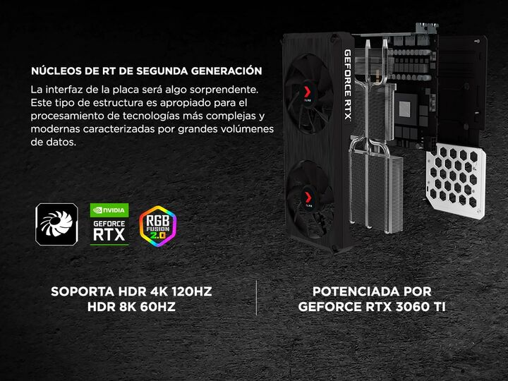 GeForce RTX 3060 Ti 8GB XLR8 Gaming REVEL EPIC-X RGB Dual Fan LHR Multiprocesadores de streaming Ampere de NVIDIA Los pilares para la GPU más rápida y eficiente del mundo, el nuevo Ampere SM aporta el doble de rendimiento FP32 y mayor eficiencia energética Núcleos de RT de segunda generación Experim...