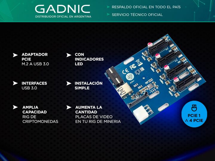 ¡Nueva Placa Expansora Pcie-1 (1 A 4) Pcie-1 Multiplicador 5gb! Producto El adaptador multiplicador PCIe 1 a 4 PCIe puede expandir 4 ranuras PCI Express 1 y ranuras mini PCIe a través de su placa base. Podrá utilizar 4 puertos PCI Express-1 (sonido, red, gráficos, etc.) en su computadora. 100% nuevo...