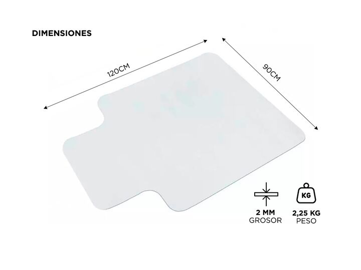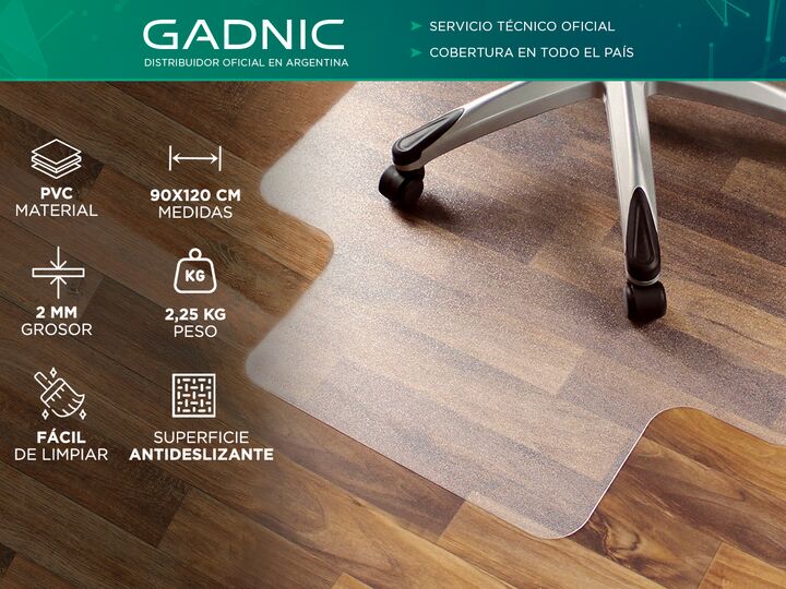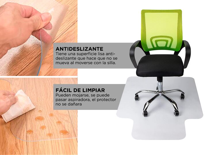 Nueva Placa Vinilica Protectora para pisos Gadnic Esta Placa Vinilica puede prevenir efectivamente que el piso no se raye y protegerlo. Tiene una superficie lisa Antideslizante que hace que no se mueva al moverse con la silla Especificaciones Material: PVC Medidas: 90 x 120 cm (Ancho x Largo) Grosor...