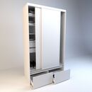 Unicos con perfiles de alumino al tono de las puertas Interior y puerta del mismo color Cantidad de puertas: 2 Cantidad de cajones Interiores: 2 Cantidad de estantes: 7 Interior boxes Correderas metálicas Sistema para puertas corredizas suaves Interior cajones revestidos IMPORTANTE Los muebles salen...