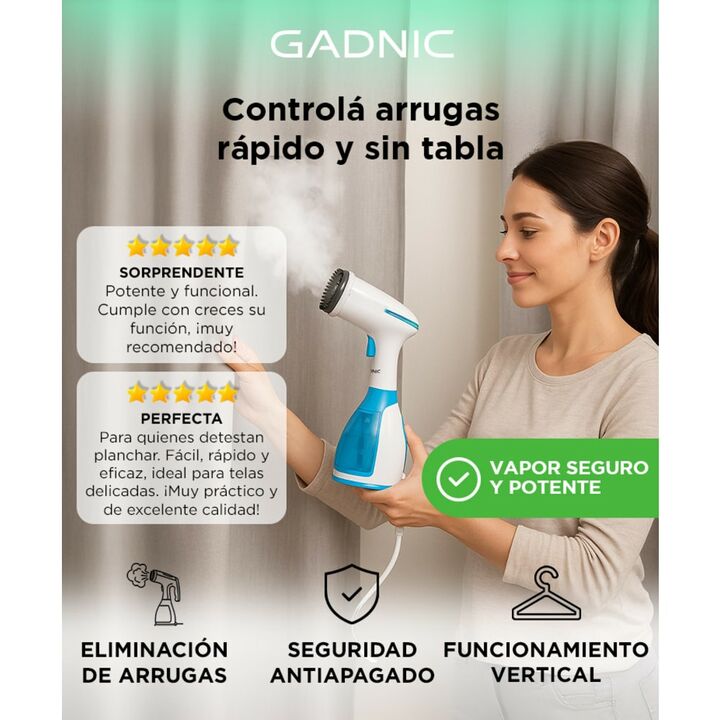 ¡Plancha a Vapor Vertical Gadnic ! ¡No dejes que las arrugas y los pliegues complicados arruinen tus prendas! Su Plancha vertical a vapor es lo suficientemente fuerte como para atravesar esas arrugas difíciles y lo suficientemente pequeño como para guardarlo fácilmente. Especificaciones Uso de Planc...