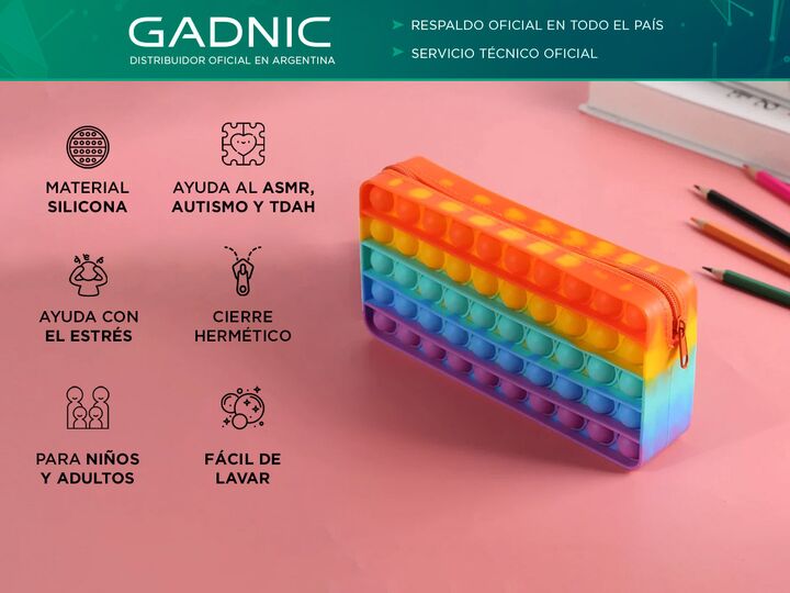 ¡Presentamos la nueva Cartuchera Popit Gadnic Multicolor! Con un diseño innovador y funcional, sus burbujas ofrecen una suave sensación de estallido que ayuda a aliviar el estrés en cualquier momento. Además de ser una cartuchera, también es un juego portátil ideal para disfrutar en la escuela, la o...
