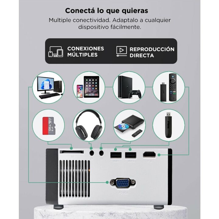 Experimenta la magia del entretenimiento en pantalla grande con nuestro Proyector HD. Con una calidad HD nítida y brillante, este proyector ofrece una experiencia visual excepcional. Ya sea que estés viendo películas, transmitiendo tus programas de televisión favoritos o mostrando presentaciones, ca...