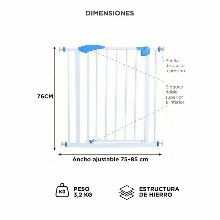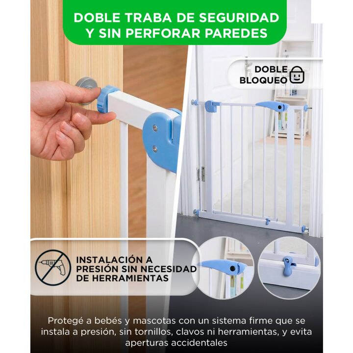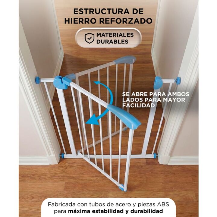 Protección confiable para bebés y niños pequeños La puerta de seguridad Gadnic está diseñada para bloquear accesos peligrosos como escaleras pasillos o habitaciones manteniendo a los niños protegidos. Su estructura firme crea una barrera segura sin afectar la circulación del hogar. Es ideal para fam...