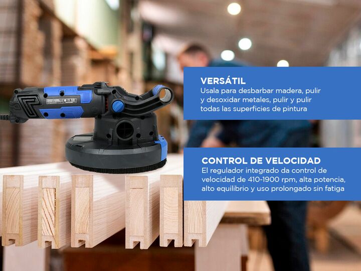 Prepara tus superficies para un acabado excepcional con nuestra Pulidora de alto rendimiento. Con un potente motor de 1050W y un control de velocidad variable, nuestra pulidora te brinda la potencia necesaria para tareas de pulido exigentes. Puedes ajustar la velocidad sin carga de 410 a 1900 rpm, l...