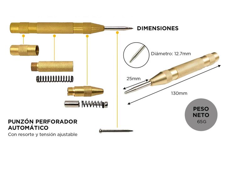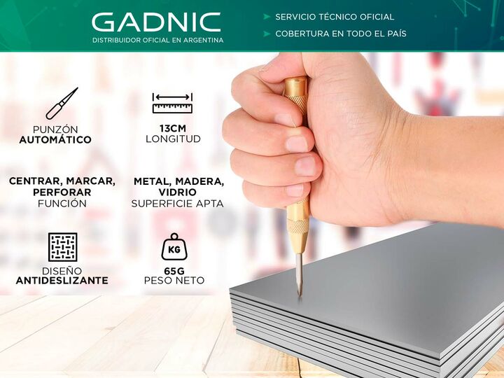 ¡Nuevo Punzón Perforador Gadnic! El punzón Gadnic es tu herramienta de mano ideal diseñada para expulsar remaches y pasadores cilíndricos o cónicos, pues resisten los impactos del martillo, para aflojar los pasadores y empezar a alinear agujeros, marcar superficies duras y perforar materiales lamina...