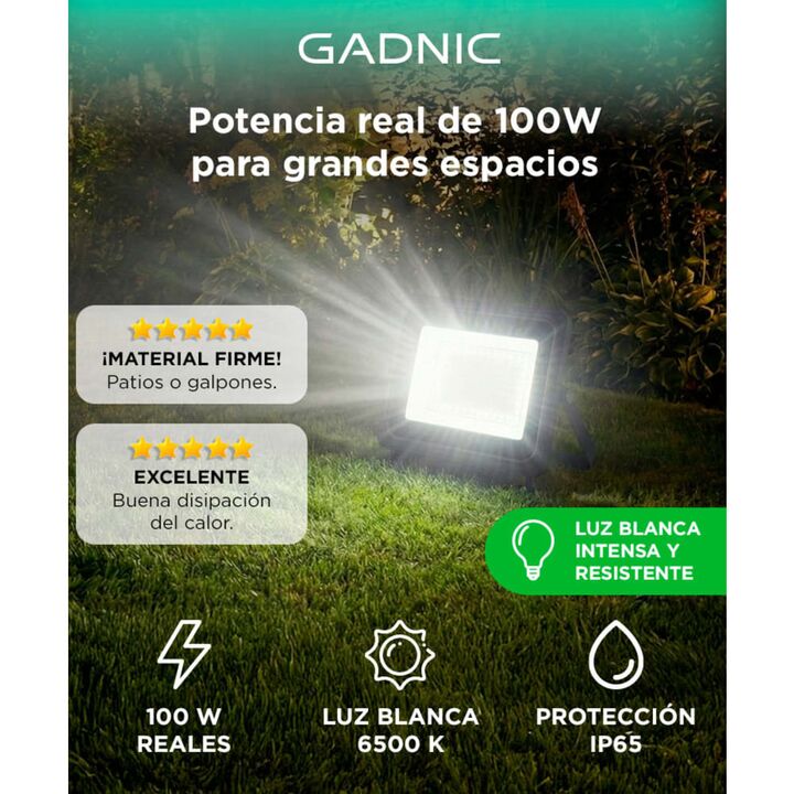 ¡Iluminá tus espacios con potencia y eficiencia! El Reflector LED Gadnic de 100 W es ideal para iluminar patios, canchas de fútbol y áreas amplias, brindando una iluminación potente y uniforme. Este reflector destaca por su bajo consumo, permitiéndote ahorrar energía sin perder calidad de luz, hacié...