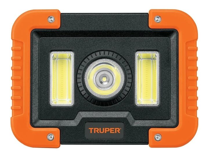 Lmpara LED 1000 lm de trabajo recargable Truper Clave LAT-1300 Distancia del haz de luz 220 m Modos de iluminacin Alto bajo laterales Duracin de carga de la batera 4 horas central 1.5 horas alto 3 horas bajo laterales LED alta luminosidad central LED COB laterales Gancho para uso a manos libres Cum...