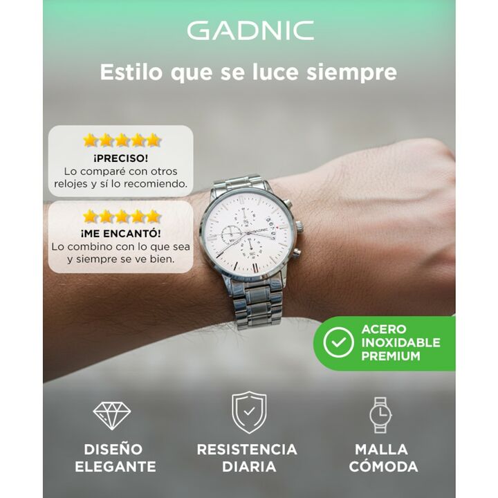 El reloj Gadnic REL11 es perfecto para quienes desean mantener un estilo elegante incluso en la vida cotidiana. Su diseño combina lo clásico con un toque moderno, ideal para quienes aprecian un look sutil y sofisticado en cualquier ocasión. Este modelo analógico de movimiento de cuarzo cuenta con cr...