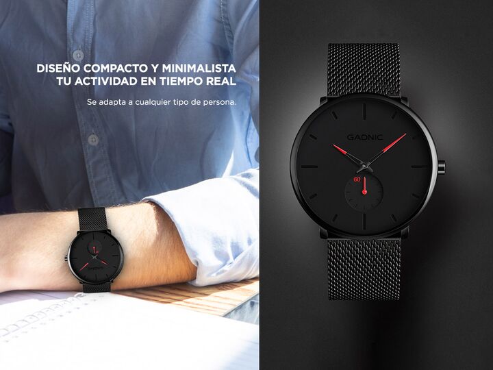 ¡ Gadnic presenta su nueva línea de relojes minimalistas de alta calidad ! Este clásico y sencillo reloj de pulsera para será ideal para cualquier ocasión. Su diseño compacto y minimalista lo hacen el más vendido del mercado. La correa mallada regulable de acero inoxidable logra una adaptación a cua...