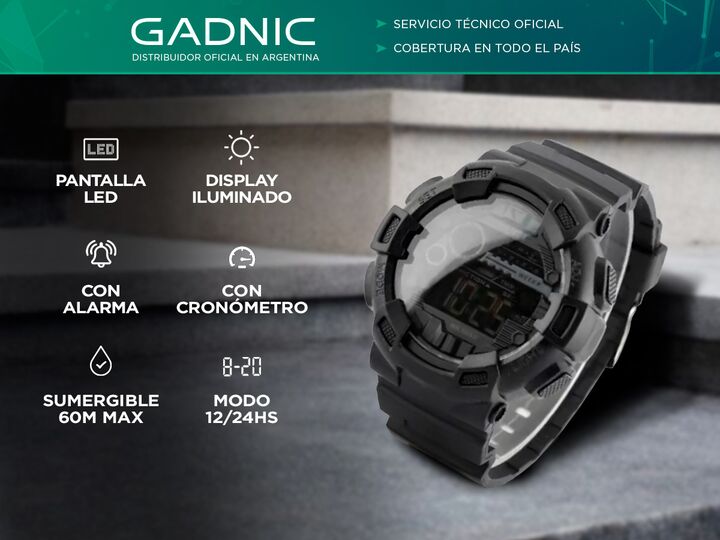 ¡Nuevo Reloj Deportivo RLM30 Para Hombre By Gadnic! El nuevo reloj deportivo con display digital by Gadnic será tu compañero ideal en cada ocasión Sus múltiples funciones lo convierten en un reloj ideal para deportes y día a día, su configuración es muy sencilla y su diseño es liviano y ergonómico. ...