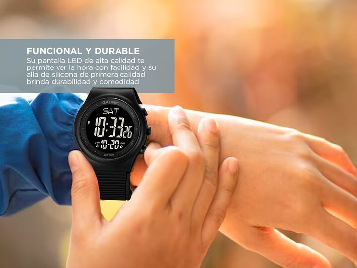 Presentamos el reloj deportivo LED de Gadnic, una elección excepcional para los amantes de la moda y la actividad física. Este reloj ha sido diseñado pensando en la comodidad y el estilo. Nuestro reloj deportivo Gadnic está fabricado con silicona de primera calidad para brindar durabilidad y comodid...