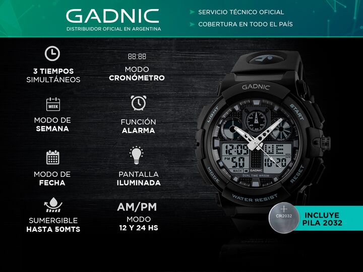 ¡Nuevo Reloj Deportivo RM60F22 Para Hombre By Gadnic! El nuevo reloj deportivo con display digital by Gadnic será tu compañero ideal en cada ocasión Sus múltiples funciones lo convierten en un reloj ideal para deportes y día a día, su configuración es muy sencilla y su diseño es liviano y ergonómico...