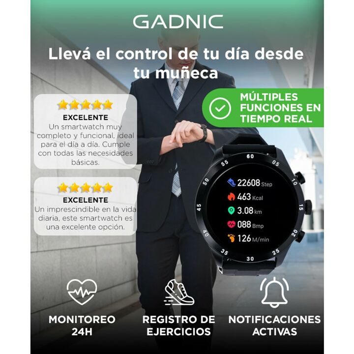¡Presentamos el Reloj Inteligente Gadnic! La combinación perfecta de estilo y funcionalidad. Este reloj inteligente, habilitado con Bluetooth, está diseñado para mejorar tu estilo de vida y mantenerte conectado mientras estás en movimiento. Con su diseño elegante y moderno, el Reloj Inteligente Gadn...